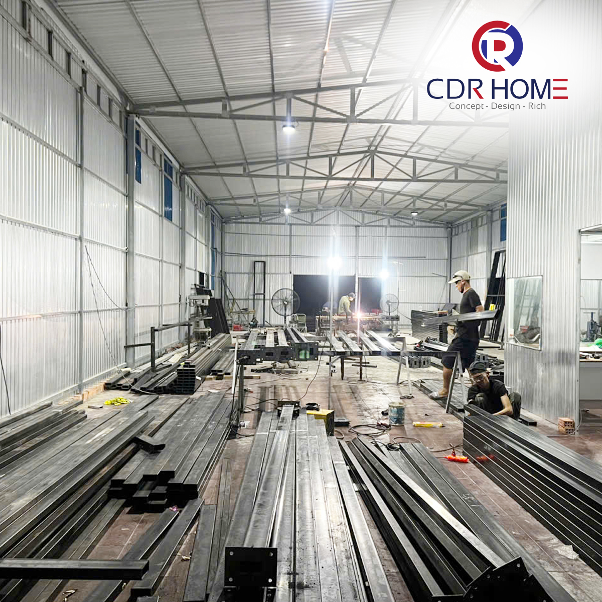 CDR HOME thực hiện kiểm soát chất lượng xuyên suốt trong toàn bộ quá trình gia công. Mỗi cấu kiện trước khi xuất xưởng đều phải đáp ứng các tiêu chí kỹ thuật về kích thước, dung sai, chất lượng mối hàn và độ hoàn thiện bề mặt. Bên cạnh đó, tiến độ thi công được theo dõi và điều phối chặt chẽ nhằm đảm bảo sự liên kết giữa các công đoạn, từ gia công tại xưởng đến vận chuyển và lắp dựng tại công trường. Dự án hiện đang được triển khai đúng kế hoạch, tạo tiền đề thuận lợi cho các giai đoạn tiếp theo như vận chuyển cấu kiện và thi công lắp dựng.