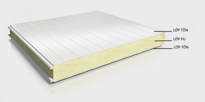 Panel PU (Polyurethane, hoặc PIR – Polyisocyanurate) gồm hai lớp tôn mạ kẽm hoặc tôn mạ màu bao bọc lõi PU được phun nở ở áp suất cao. Lõi PU có cấu trúc bọt kín, liên kết chặt với hai bề mặt kim loại, tạo thành một khối thống nhất có khả năng cách nhiệt vượt trội.