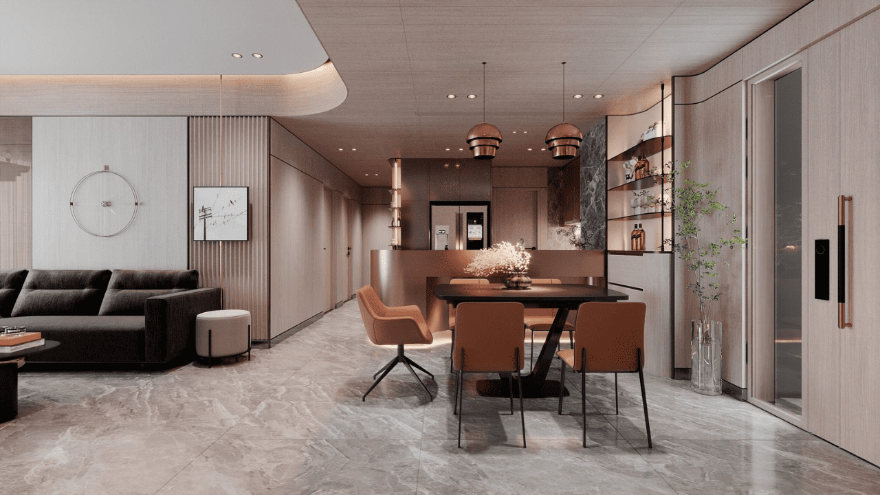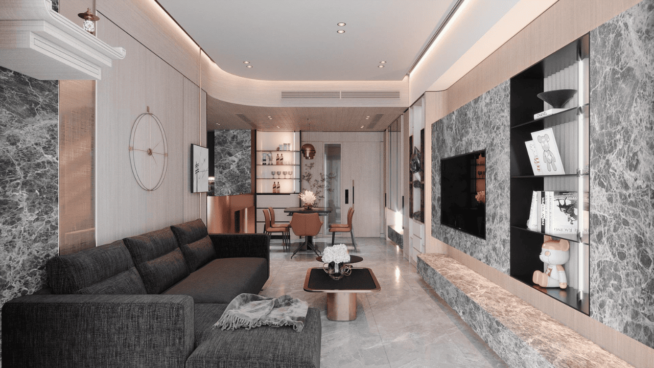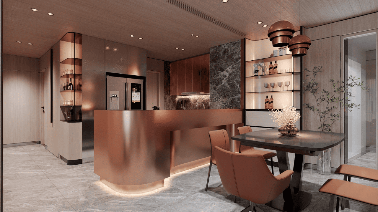The apartment stands out with its open design, maximizing natural light and airflow to create a refreshing atmosphere from the very first step inside. 3D renderings by CDR Home vividly capture every detail of the high-end interior, spacious balconies, and lush greenery, crafting a luxurious yet nature-connected living space.