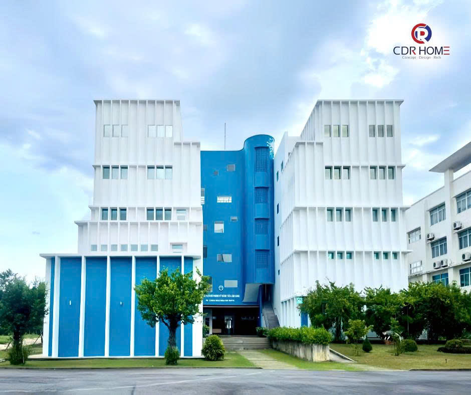 Sau khi hoàn thiện, công trình mang diện mạo hiện đại – tươi sáng – bền màu, kết hợp hài hòa giữa hai gam màu xanh dương và trắng, tạo cảm giác dễ chịu và chuyên nghiệp đúng với tính chất công trình y học – đào tạo mô phỏng.